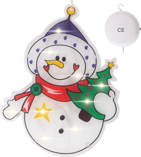 De hangende kerstdecoratie in de vorm van een sneeuwman brengt gezellige LED-verlichting en een vrolijk wintermotief in je interieur. Dankzij de batterijvoeding is de decoratie draadloos en kun je hem plaatsen waar je maar wilt – vooral op ramen, deuren of gladde wanden.