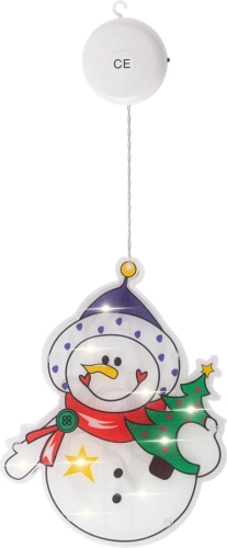 Hangende LED-raamdecoratie – sneeuwman. Draadloos, met zuignap, voeding 3× AAA. Dubbelzijdig motief, ideaal voor binnen en de kinderkamer.