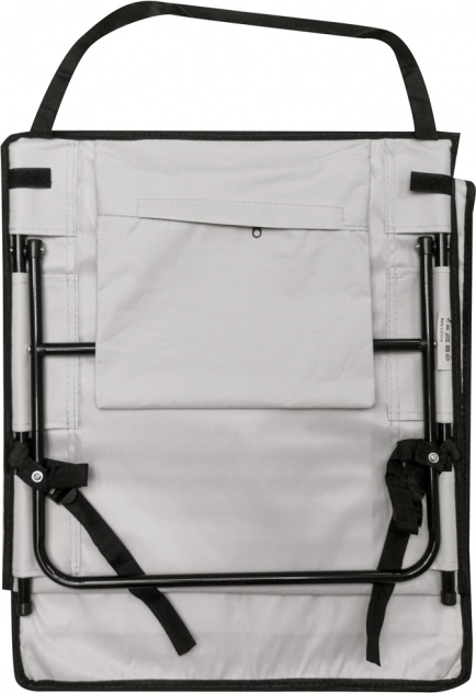 Dit ligbed heeft een stevige metalen constructie en waterbestendige stof, waardoor het verschillende seizoenen overleeft. Het is uitgerust met een handige tas die aan de rugleuning is bevestigd, waar u uw telefoon of sleutels kunt opbergen. Opgevouwen neemt het weinig ruimte in beslag en dankzij de handgreep is het vervoer een fluitje van een cent.