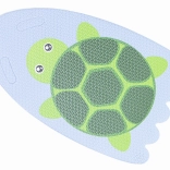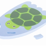 Het schattige schildpadmotief op een lichtblauwe achtergrond maakt van trainen een spel en helpt kinderen watervrees te overwinnen.
