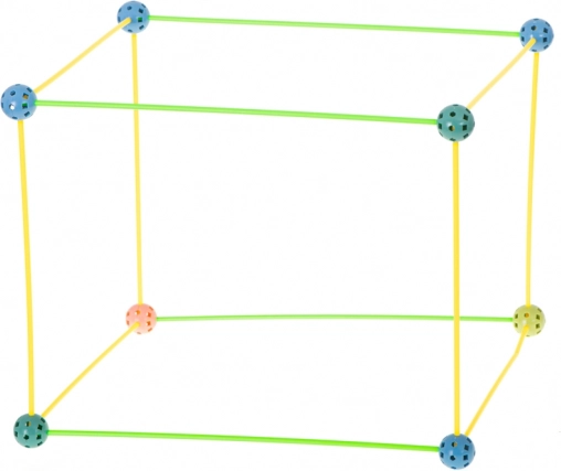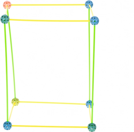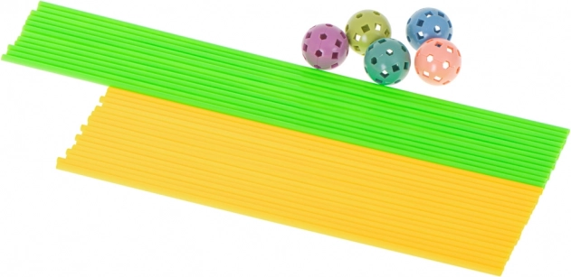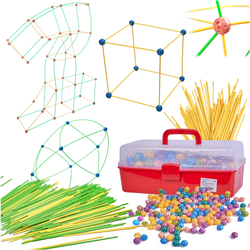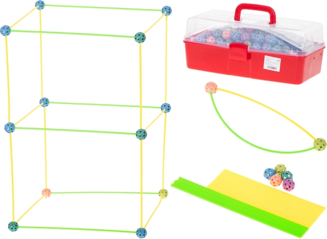 Deze constructieset combineert lange kunststof staafjes met duurzame geperforeerde ballen met veel openingen voor eenvoudig vastklikken. Kinderen kunnen 3D-constructies maken – van huisjes en tenten tot tunnels en forten – de fantasie kent geen grenzen. De onderdelen zijn licht, veilig en herbruikbaar.