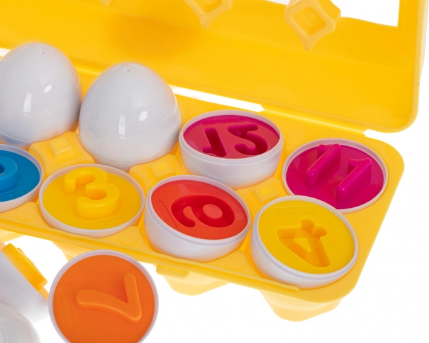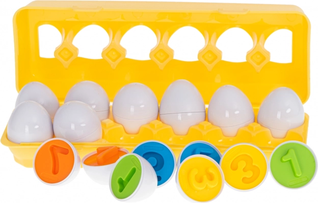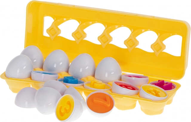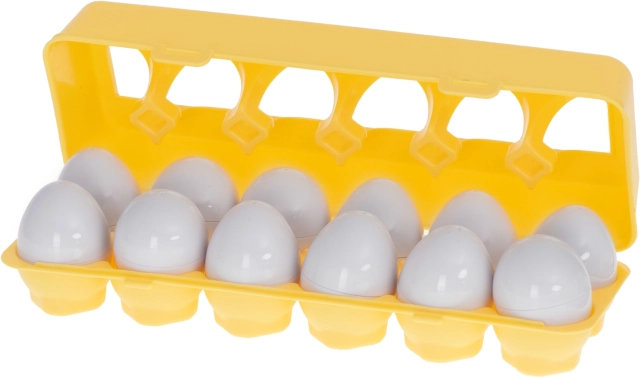 De educatieve speelgoedset in de vorm van eieren biedt uren plezier voor kinderen en leert hen vormen en kleuren herkennen. De set bevat 12 eieren die halfjes op basis van vorm en kleur correct aan elkaar moeten worden gekoppeld. Deze puzzel ondersteunt niet alleen het logisch denken en de creativiteit, maar helpt ook de fijne motoriek van de kleintjes te ontwikkelen.