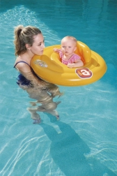 Deze opblaasbare waterzit van Bestway is de ideale oplossing voor een veilige kennismaking van je kind met de waterwereld. Stabiliteit en goede drijfkracht worden gegarandeerd door de ronde vorm, terwijl het zitje met beenopeningen comfort en veiligheid biedt.