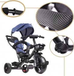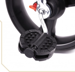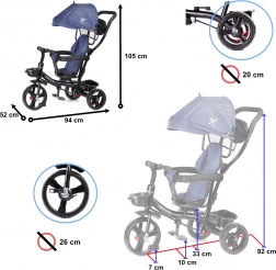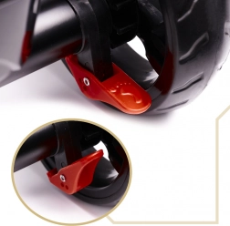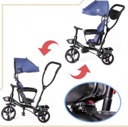 Voor maximale controle is er een 360° draaibare zitting, die rijden naar de ouder toe of met de rijrichting mee mogelijk maakt. Het vrije wiel (vrijloop) laat ouders met één schakelaar de aandrijving overnemen. Luchtvrije wielen zorgen voor comfort als bij luchtbanden, maar zonder zorgen over bandenspanning en lekken. Verder is er een drie-standen inklapbare kap met gaas, een afneembare duwstang met foam bekleding en praktische opbergaccessoires.