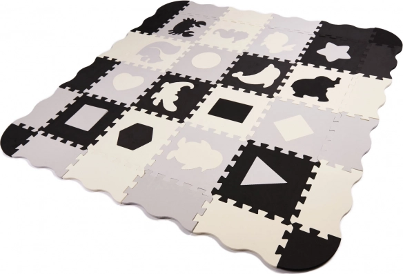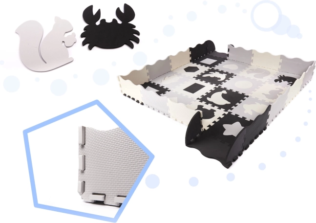 Ontdek eindeloze mogelijkheden voor plezier met de educatieve puzzelmat! Deze grote schuimen puzzelmat met uitneembare elementen in contrasterende kleuren is ideaal voor jonge kinderen die de wereld van vormen en kleuren ontdekken.