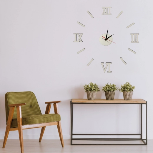 Breng een eigentijdse stijl in je huis of kantoor met deze elegante wandklok. De verstelbare grootte van 70 cm tot 130 cm maakt een perfecte afstemming op jouw ruimte mogelijk. De klok is eenvoudig te monteren op gladde oppervlakken met behulp van zelfklevende elementen, waardoor boren of gereedschap overbodig is.