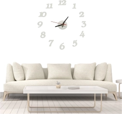 Deze klokset, bedoeld voor zelfmontage, biedt flexibele afmetingen van 70 cm tot 130 cm. De klok is uitsluitend bedoeld voor montage op gladde oppervlakken en werkt op AA-batterijen, die niet bij de levering zijn inbegrepen. Soepel lopende wijzers zorgen voor een nauwkeurige tijdmeting.