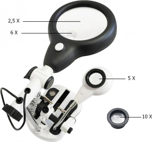 - Loep met derde hand en LED-verlichting