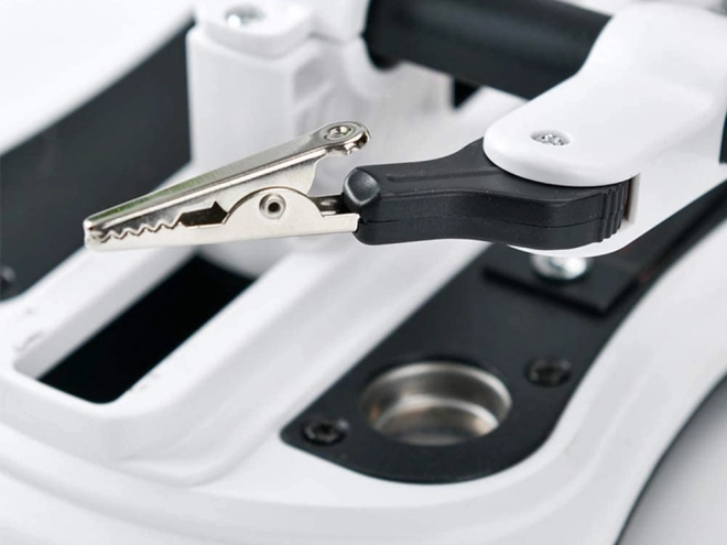 Professionele werkloep met geïntegreerde LED-verlichting en een “derde hand”-systeem vereenvoudigt alle taken die maximale precisie vereisen. De grote lens met een diameter van 10,4 cm met verlichting en de kleinere verwisselbare lens maken gedetailleerde inspectie, solderen en lijmen van kleine onderdelen mogelijk.