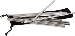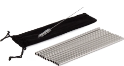 De set bevat 10 rechte rietjes, een lang reinigingsborsteltje voor eenvoudig onderhoud en een zacht zwart etui met trekkoord. Je reinigt de rietjes eenvoudig met water en afwasmiddel; het borsteltje bereikt ook moeilijk toegankelijke plekken. Ideaal voor thuis, op het werk, op reis en tijdens het kamperen.