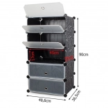 De schoenenkast heeft 5 planken die flexibel kunnen worden gestapeld of naast elkaar geplaatst, afhankelijk van ruimte en behoefte. De constructie is licht en stabiel, wat de handling en montage vergemakkelijkt. Dankzij de transparante vensters vindt u snel en makkelijk wat u zoekt. Het materiaal van de kast is waterbestendig en kan zonder problemen worden gereinigd.