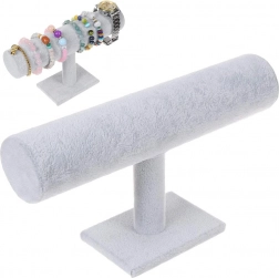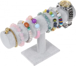 Een elegante sieradenstandaard met een zachte suède-achtige afwerking houdt je horloges, armbanden en andere accessoires overzichtelijk bij elkaar. Dankzij de brede rol biedt hij plaats aan meerdere stuks, heeft een stabiele constructie, is licht, makkelijk schoon te maken en past perfect in de slaapkamer, op de kaptafel, in een etalage of voor presentaties.