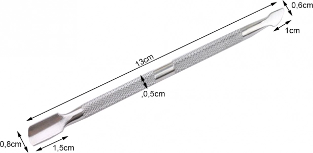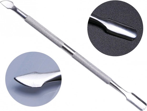 De tool voor nagelriemen en nagels is gemaakt van hoogwaardig roestvrij staal, wat een lange levensduur en de mogelijkheid tot sterilisatie garandeert. De twee scherpe uiteinden zorgen voor nauwkeurige verwijdering van nagelriemen en eelt.