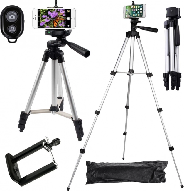 • Inhoud van de verpakking: statief, telefoonhouder, Bluetooth-afstandsbediening, draagtas, originele verpakking