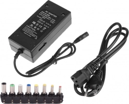 De verpakking bevat 8 verwisselbare connectors die populaire merken en modellen laptops dekken (bijv. ACER, ASUS, DELL, HP, LENOVO, SONY VAIO, TOSHIBA e.a.). LED’s informeren over de huidige bedrijfsmodus en de spanningsschakelaar maakt snelle aanpassing mogelijk.