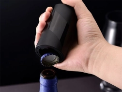 Geniet van zorgeloos openen van flessen dankzij het slimme mechanisme dat werkt met een eenvoudige druk. Plaats de opener verticaal op de flessenhals en druk naar beneden – de dop komt los en blijft vastzitten aan de magneet. De dop vervormt niet, zodat je de fles opnieuw kunt afsluiten.