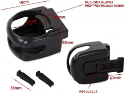 De verschuifbare onderstrip maakt het mogelijk de hoek van de houder aan te passen, zodat je drankje altijd binnen handbereik is en de bediening van de ventilatie niet belemmert.