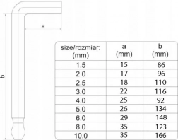 - 1,5 mm, 2 mm, 2,5 mm, 3 mm, 4 mm, 5 mm, 6 mm, 8 mm, 10 mm