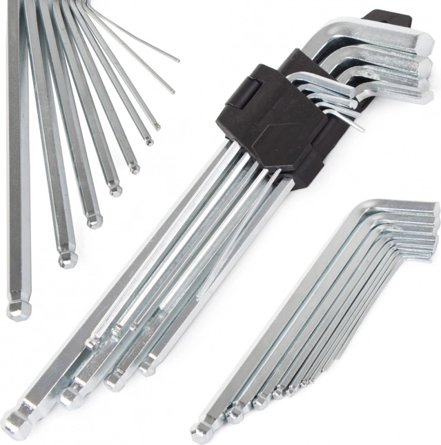 - Zeer nauwkeurige set sleutels in L-vorm.