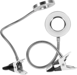 De lamp is uitgerust met USB-voeding met een schakelaar op de kabel en een stevige klem die hem veilig op verschillende oppervlakken bevestigt zonder krassen te maken.