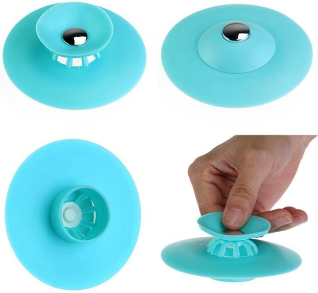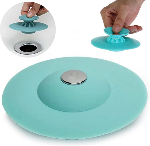 Siliconen stop en zeef voor gootsteen en bad – Turkoois