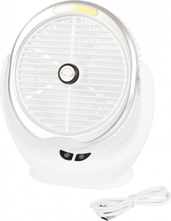 Geniet van aangename verkoeling waar je maar wilt. Deze draagbare bureauventilator combineert draadloze werking, compacte afmetingen en betrouwbaar vermogen van 1–5,5 W. Dankzij het geïntegreerde LED-licht dient hij ook als extra verlichting op je werkplek of tijdens het kamperen.