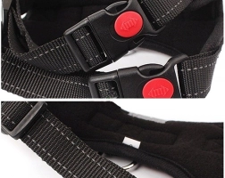 Voor avondwandelingen is het harnas uitgerust met reflecterende stiksels voor betere zichtbaarheid. De robuuste metalen D-ring voor het bevestigen van de lijn en de geïntegreerde handgreep geven de eigenaar directe controle in drukke omgevingen.