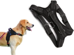 Comfortabel en duurzaam harnas voor grote honden dat de druk gelijkmatig verdeelt en de nek beschermt. Dankzij reflecterende elementen, vergrendelbare gespen en een praktische handgreep biedt het maximale veiligheid en comfort tijdens dagelijkse wandelingen.
