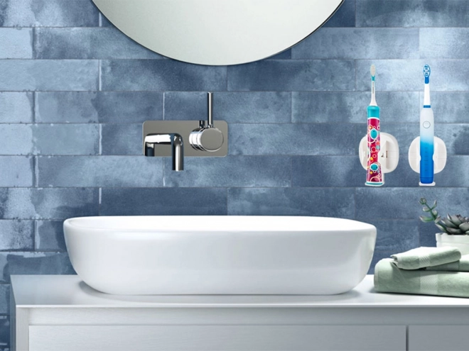 Deze wandhouder voor elektrische tandenborstel bespaart ruimte in uw badkamer. Eenvoudige installatie met behulp van transparante lijm.