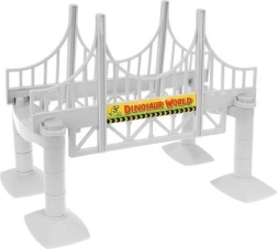 - 142 raildelen, terreinwagentje, poort, 2× helling, brug, 4× boompje, 2× dinosaurus