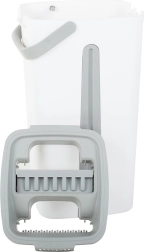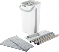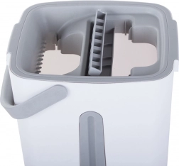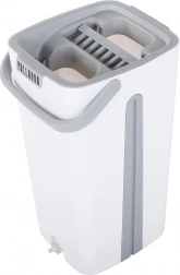 De mop met tweekamer-knijpemmer is ontworpen voor efficiënte en comfortabele reiniging. Hij is uitgerust met een praktische lichte constructie en past zich snel aan elk type vloer aan, van tegels tot hout. Met deze mop bereikt u perfecte reinigingsresultaten zonder veel inspanning.