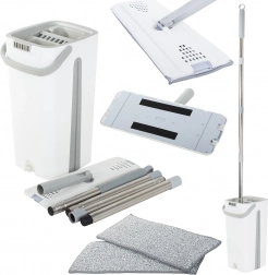 De mop omvat een innovatieve tweekamer-emmer die schoon en vuil water scheidt. Tijdens het persen absorbeert de mop snel vuil en water, wat hem nog effectiever maakt. Het handvat van de mop is opvouwbaar en antislip, wat eenvoudig gebruik en opslag mogelijk maakt.
