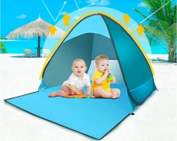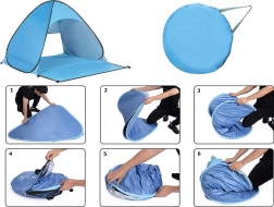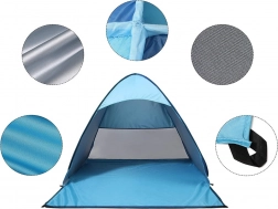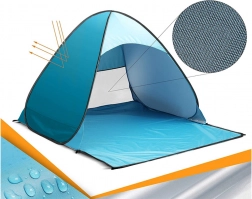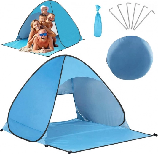 De praktische strandtent voor het hele gezin biedt betrouwbare schaduw en luwte tijdens warme dagen. Het zelfopzettende pop-up systeem maakt razendsnel opzetten zonder gereedschap mogelijk, zodat je meer tijd hebt om te relaxen. De duurzame stof met UV-bescherming beschermt de huid tegen schadelijke straling, terwijl het gaasraam en de achterste ventilatie zorgen voor luchtcirculatie.
