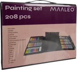 Ontdek de vreugde van creativiteit met de kunstenaarsset van Maaleo in een praktische koffer, met daarin 208 stuks gereedschappen voor schilderen, inclusief verf, kleurpotloden, stiften en meer. Ideaal voor kleine kunstenaars die altijd alles binnen handbereik willen hebben.