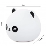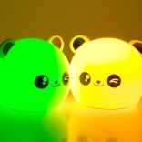Schattig kinder-nachtlampje in de vorm van een panda van zacht siliconen, brengt prettig, rustgevend licht in elke kinderkamer. Eenvoudig te bedienen met aanraking of tikken, biedt 5 kleurstanden inclusief vloeiende RGB-overgang en dankzij voeding op 3× AAA-batterijen ideaal voor op het nachtkastje of in bed. De kap is makkelijk afwasbaar, het materiaal is duurzaam, veilig en zonder scherpe randen.